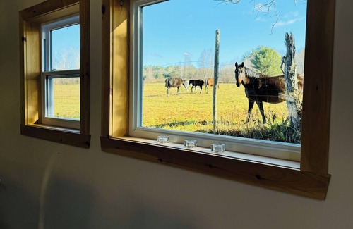 Located in Frelighsburg, this 2-bedroom, 1-bathroom vacation home lets you experience it all. Fans of nature and the outdoors will love being 2 minutes by car from Parc Goodhue and 2 minutes from Halte Jeanne-Demers. You'll easily make the quick 4-minute drive to Clos Saragnat Winery or the 2-minute drive to Parc Dwyer.