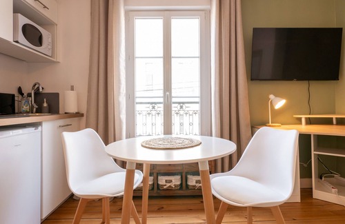 Este encantador estudio luminoso tiene una entrada que conduce a una sala de estar con espacio de trabajo, televisión (es necesario utilizar Molotov para ver la televisión) y acceso gratuito a Wi-Fi. También cuenta con un área de comedor y una kitchenette equipada con microondas, cafetera, hervidor de agua, etc. La zona de dormitorio está equipada con una cama doble, armario y un baño con ducha, lavabo y WC.