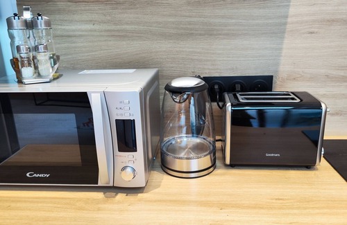 Prepara una comida casera en la cocina, equipada con horno, placa de cocina y frigorífico, además de cafetera y tetera, hervidor eléctrico y microondas. Conéctate al wifi gratis, o relájate frente a un Smart TV.