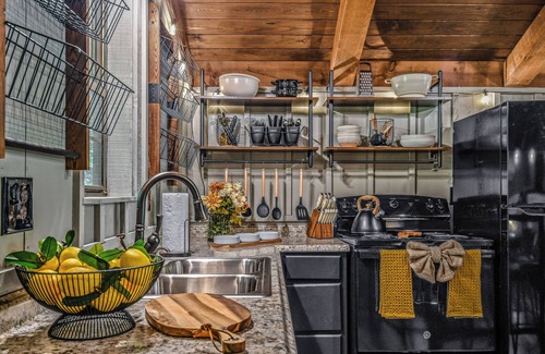 En esta cabaña que acepta mascotas podrás disfrutar de descensos en trineo, del snowboard y de mucho más a muy poca distancia. Al disponer de un aparcamiento en las instalaciones, podrás olvidarte de tu vehículo y salir a pasear. Estarás a 11min a pie de Museo The Little River Railroad and Lumber Company y a 15min a pie de Puente colgante Dark Island.