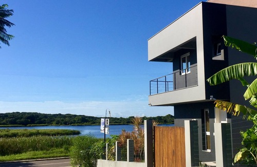 La Lagoinha's Guest House está situada frente a uno de los más hermosos paisajes de Florianópolis. Su patio es la Laguna Pequeña del Campeche (perfecta para nadar y andar de Stand Up Paddle) que pertenece a un área de preservación permanente que se extiende hasta el centro de la playa que une a Joaquina al Morro de las Piedras. Sus hospedajes, además de poseer el visual de la Lagoinha y del Parque Ecológico, aún posibilitan a los huéspedes deslumbrarse con la vista de la famosa Isla del Campeche al fondo. En medio de una naturaleza exuberante compuesta por laguna, playa, cerros, dunas y zona rural, está al mismo tiempo rodeada de todos los servicios útiles, así como el ocio y la gastronomía, que un área urbana y turística puede ofrecer. La casa posee una arquitectura marcada y contemporánea con ambientes funcionales y confortables, su decoración es actual y relajada, además de ser súper cómodo y acogedor perfecto para vacaciones en familia. La casa está compuesta por 3 suites (matrimonio) con balcón y red con vista de la Laguna, 1 habitación auxiliar con bicama de soltero, lavabo y cocina completa integrada con estar y deck que también poseen el hermoso visual de la laguna. Posee jardín con área para fogueira y slackline, además de una huerta mandala que está disponible para los huéspedes. Comodidades: 1 cama doble grande, 1 cama doble, 1 cama doble estándar, 1 bicama super rey soltero, 3 baños completos, 1 Lavabo, chimenea, aire acondicionado, wi-fi, TV por cable, sistema de seguridad, barbacoa portátil, plaza de aparcamiento, mesa de trabajo y 3 balcones con red. Cocina completa equipada con nevera inverse, horno eléctrico, microondas, hervidor eléctrico, batidora, tostadora, mezcladora, batidora, máquina de hacer pan y filtro de agua helada. Lavandería de uso común (con lavadora, tanque y soporte para guardar tablas). Ofrecemos flexibilidad en los alojamientos de acuerdo a la necesidad de los clientes, que pueden optar por alquilar sólo una suite, un loft con cocina, una casa para hasta 10 personas o cerrar todos los espacios en el caso de grupos más grandes. Los anfitriones siempre están dispuestos a ayudar y dar consejos sobre el lugar, haciendo que los huéspedes se sientan realmente en casa, familiarizados con el lugar y disfrutando de lo mejor de la Isla de Florianópolis. ¡Venga a disfrutar de días increíbles en Floripa! Será un placer recibirlos