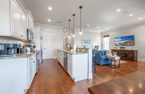 Este alojamiento de 4 dormitorios y 4 baños cuenta con una sala de estar, aire acondicionado y servicio local de entrega de comida. El cuarto de baño incluye un secador de pelo y toallas. La cocina está equipada con horno, placa de cocina y frigorífico, además de cafetera y tetera, máquina de hielo y microondas. Y gracias a la lavadora y la secadora, podrás viajar con poco equipaje.
