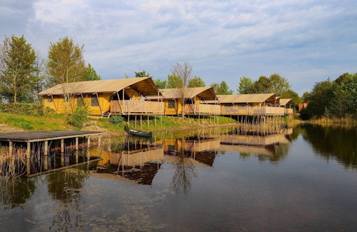 Hay dos alojamientos directamente por el estanque. El Lodge 4 persona (NL-8314-07) es un alojamiento muy cómodo con una hermosa terraza y un embarcadero privado. La lujosa tienda de safari (NL-8314-08) es una experiencia en sí misma, con una amplia terraza sobre el agua como más sorprendente. En el interior, las carpas son espaciosas y cuentan con un baño y una cocina "normal". El parque de vacaciones Eigen Wijze no sería en sí mismo si estos alojamientos no pudieron ser reservados como una combinación, creando un alojamiento grupal. La combinación para 16 personas (cuatro alojamientos de 4 personas con un espacio compartido que incluye cocina) se pueden reservar bajo el número NL-8314-09. Una combinación para 24 personas (cuatro tiendas de safari de 6 personas con una gran carpa de grupo, incluida la cocina), se pueden reservar bajo el número NL-8314-10.