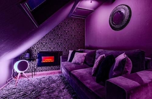 This entire apartment, fully dedicated to couples' pleasures, has been renovated in a leather and baroque style. It features a central room with a tantra chair and a swing to try new positions, as well as a bedroom equipped with a Saint Andrew's cross with cuffs for arms and legs. Variable color lighting allows you to create the ambiance of your choice throughout the apartment.