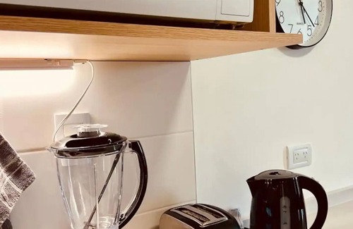 La cocina está equipada con horno, placa de cocina y frigorífico, además de cafetera y tetera, microondas y utensilios de cocina. Disfruta del wifi y de la televisión. El cuarto de baño incluye un secador de pelo, toallas y papel higiénico. Otras comodidades de este alojamiento de 1 dormitorio y 1 baño incluyen ropa de cama, una tabla de planchar, aire acondicionado y calefacción.