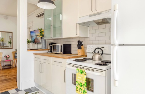 Prepara una comida casera en la cocina, equipada con horno, frigorífico, cafetera y tetera y microondas. Disfruta de la conexión a Internet y de la televisión. El cuarto de baño incluye un secador de pelo y toallas. Podrás viajar con poco equipaje, porque tendrás una lavadora y una secadora a tu disposición. Otras comodidades de este alojamiento de 1 dormitorio y 1 baño incluyen ropa de cama, una tabla de planchar, aire acondicionado y calefacción.