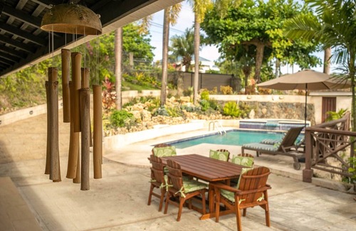 A spacious and very scenic property consisting of four air-conditioned bedrooms and three bathrooms in the main house. With the option of access to a fifth bedroom, now that this property's annex has been air-conditioned and comes furnished with a queen-size bed, its own bathroom, not to mention the convenience of a second refrigerator, along with a generously sized SS grill thrown in, making extended hours of poolside relaxation possible.