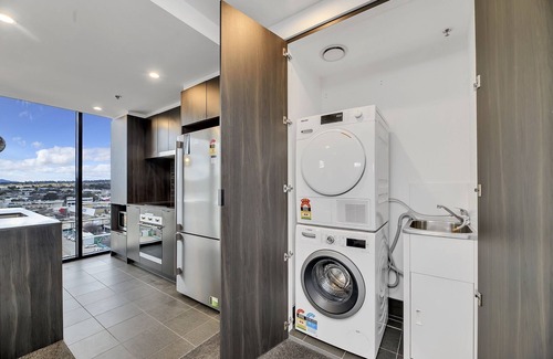 Al instalarte en este alojamiento de 2 dormitorios y 2 baños, encontrarás aire acondicionado, escritorio y oficinas. El cuarto de baño incluye un secador de pelo y toallas. La cocina está equipada con horno, placa de cocina y frigorífico, además de cafetera y tetera, microondas y utensilios de cocina. Y no tendrás que llevarte ropa de más, porque podrás aprovechar la lavadora y la secadora.
