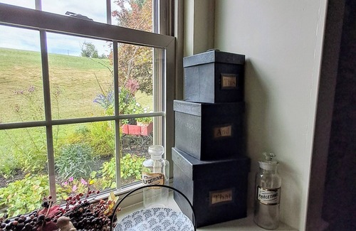 Esta suite colonial es una belleza rural con acceso a comida, compras y visitas turísticas a solo unos minutos. La suite está conectada a una granja del siglo XVIII ubicada en 2 acres de tierras de cultivo circundantes. La unidad ofrece un baño con ducha, así como una lavadora y secadora estándar. El salón es amplio y espacioso. Se encuentra junto a la cocina, que cuenta con una mini nevera, microondas, tetera eléctrica, Keurig y horno tostador.