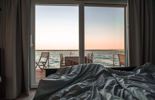 Puro lujo - situado en la primera fila de una bella vista sobre el gran lago Goitzsche en nuestra casa flotante moderno y confortable. Gracias a su generoso plano de planta, es muy adecuado para cuatro a siete personas (más un bebé). Con sus 140 metros cuadrados (superficie total de aproximadamente 192qm) lo ofrece en tres plantas posible de lujo. Además el estar parado en el cajón de hormigón flotante y una gran envolvente de la cubierta para tomar el sol, relajarse o tomar el desayuno disponible. Para refrescarse se puede bucear en la escala de acceso conectado directamente en el agua.