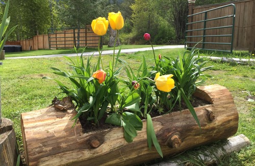 2 dormitorios, 3/4 baño, WiFi, TV por cable, aire acondicionado / calefacción, área de la estación de café / cocina, refrigerador de tamaño pequeño (cafetera, tetera, microondas, tostadora y platos) terraza privada con mesa para 4 y con Parrilla de barbacoa y quemador lateral. Ubicado en 3 acres y espaldas a la tierra del parque. 3 minutos a pie del brazo de Kootenay con una larga playa de arena.