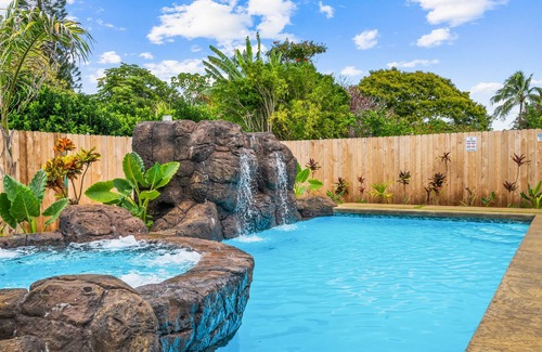 Después de todo el tiempo que ha pasado planeando sus vacaciones, desea una casa que cumpla con sus expectativas. Pues ya está. Cuando elegimos hacer de nuestra casa hawaiana un alquiler de vacaciones, consideramos que la satisfacción del cliente es nuestra máxima prioridad y nuestras opiniones lo reflejan. Se presta mucha atención a los detalles, para que pueda relajarse y disfrutar del estilo de vida de la isla. Nuestra casa tiene un patio tropical con una gran terraza que ofrece concreto estampado, postes de madera tallada, barbacoa de acero inoxidable y ventiladores de techo con una excelente área de descanso para entretener y hacer barbacoas. La ducha exterior de bambú es muy privada si prefiere ducharse al aire libre o simplemente enjuagarse después de un día en la playa.