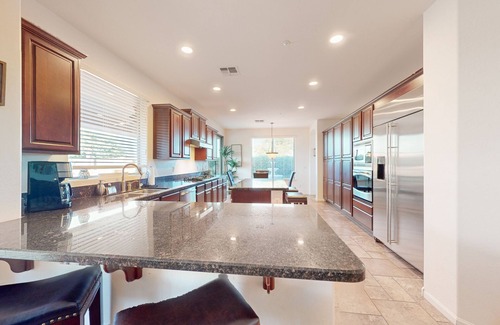 Luxe snowbird-friendly haven with heated pool, gas fireplace, balcony, & firepit | Casa en Gilbert