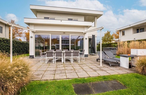 Luxurious 8-person houseboat with jacuzzi, sauna, 3 bedrooms, and garden by the water. Includes swim ladder, large dining table, sun loungers, and fully equipped kitchen. Located at Villa Resort Harderwold near the Veluwemeer! | Casa en Zeewolde