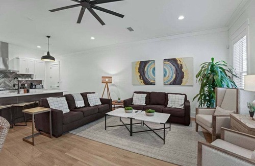 Este alojamiento de 5 dormitorios y 4.5 baños cuenta con una zona para barbacoas y aire acondicionado. Disfruta del wifi gratis y de la televisión. El cuarto de baño incluye un secador de pelo y toallas. La cocina está equipada con horno, placa de cocina y frigorífico, además de cafetera y tetera, máquina de hielo y microondas. Y como podrás aprovechar la lavadora y la secadora, no te hará falta llevar mucho equipaje. Otras comodidades incluyen ropa de cama, una tabla de planchar, calefacción y una mesa de comedor.