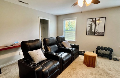 Spacious Golf Community Retreat in Monroe. This inviting two-story home offers 4 bedrooms, 3.5 bathrooms, and a media room—perfect for families and groups. Enjoy fast Wi-Fi, free parking, and a private backyard with pond and golf course views. The community also provides access to a swimming pool, tennis courts, and a public golf club. Ideal for family gatherings, golf getaways, or peaceful retreats—this home is perfect for families, groups, or friends looking for a relaxing getaway.