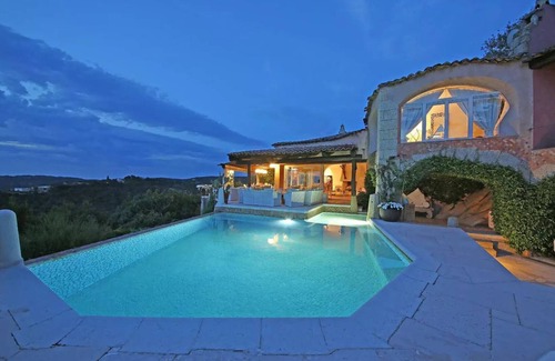 Villa located in Pantogia, with a breathtaking view of the Pevero bay. The charm and natural beauty of old Sardinia meet modern Italian style. Located on the Pantogia hill, a few minutes from Porto Cervo, the villa offers a spectacular view of the Pevero bay. The villa consists of: 1 suite with bathroom, walk-in closet, 5 double bedrooms each with bathroom, large living room with dining area and veranda overlooking the sea, spacious kitchen equipped with barbeque and pizza oven, 2 covered parking spaces. The area around the pool is equipped as an outdoor living room and panoramic dining area. The villa has a massage room with Turkish bath, a small outdoor gym and a magnificent jacuzzi.