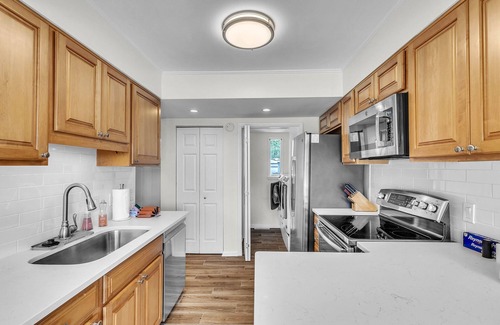 Al instalarte en este alojamiento de 2 dormitorios y 2 baños, encontrarás una sala de estar y aire acondicionado. Conéctate al wifi gratis, o relájate frente a un Smart TV. El cuarto de baño incluye un secador de pelo y toallas. La cocina está equipada con horno, placa de cocina y frigorífico, además de cafetera y tetera, microondas y utensilios de cocina. Y gracias a la lavadora y la secadora, podrás viajar con poco equipaje. Otras comodidades incluyen ropa de cama, una tabla de planchar, calefacción y una mesa de comedor.