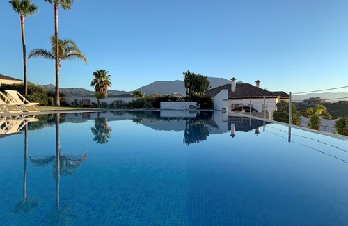 Magnífica villa de lujo para 10 a 16 personas. - magníficas vistas al mar y montaña Se encuentra en Manilva. Magnífica villa de lujo para 10 a 16 personas. - magníficas vistas al mar y montaña ofrece alojamiento, con TV, Piscina privada, Balcón/Terraza, Entre otras comodidades. Estas características Villa TV, Piscina privada, Balcón/Terraza, Para que su estadía sea cómoda.