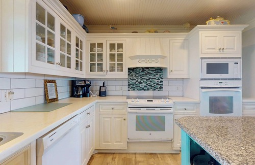 A Sea Glass Estate es un lugar ideal para bodas, reuniones, retiros y vacaciones. A solo unos pasos de distancia a través de una cubierta privada y el paseo de dunas se encuentra la arena y las olas. Relájese en el porche envolvente con asientos en la terraza, mientras disfruta de los 1. 7 acres y la vida frente a la playa. Las áreas de celebración al aire libre incluyen un bar Tiki, terraza y pérgola / escenario. Esta hermosa y única casa de 4,224 pies cuadrados tiene 9 habitaciones y 5 baños. Hay 2 master suites. Habitaciones de la siguiente manera: Primer piso - Texas Master - Cama King, sofá completo; Seaside Memories - Cama King, sofá completo; Sala de estar - 1 sofás queen; 2do piso - Pirates Cove reina / litera doble y 1 nido; El Sanddollar - Cama Queen; El faro - cama de matrimonio; El náutico - 6 literas gemelas; The Palm Tree - Cama Queen; Bajo el mar - 4 literas gemelas; 3er piso - Suite de luna de miel - Cama King - sofá completo. La cocina cuenta con hornos dobles, refrigerador / congelador doble e isla de granito. La sala de estar y el comedor de concepto abierto brindan una amplia reunión y entretenimiento. La finca está cerca de tiendas y restaurantes costeros. No Fumar. Internet provisto. Ropa de cama disponible por un costo adicional a pedido. Se admiten mascotas pequeñas con tarifa.