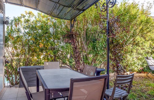 Esta casa de vacaciones amueblada con gusto ofrece a los golfistas y a los que buscan tranquilidad un hogar con estilo en un complejo bien cuidado y seguro para disfrutar de días soleados en el corazón de la Provenza. En la cocina de planta abierta, podrá disfrutar de las delicias culinarias y cenar con vistas a la vegetación. Después de un largo día, el salón, diseñado con cariño, invita a pasar horas armoniosas leyendo un buen libro o jugando a un juego de mesa.