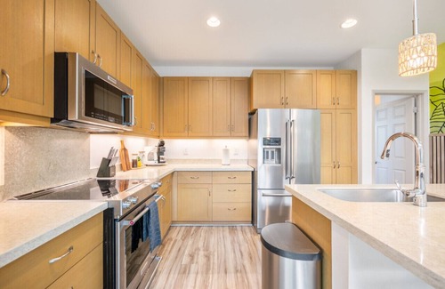 Este alojamiento de 3 dormitorios y 2.5 baños cuenta con una sala de estar, un sofá cama, una zona para barbacoas y aire acondicionado. El cuarto de baño incluye un secador de pelo y toallas. La cocina está equipada con horno, placa de cocina y frigorífico, además de cafetera y tetera, microondas y utensilios de cocina. Podrás viajar con poco equipaje, porque tendrás una lavadora y una secadora a tu disposición.