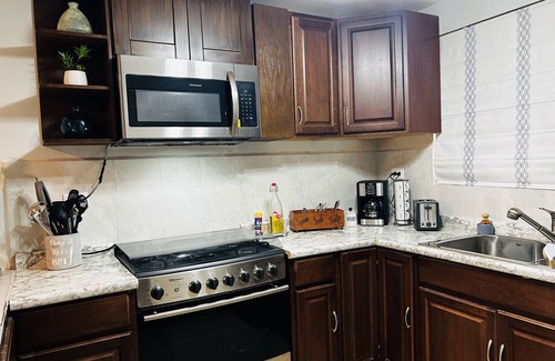 Este alojamiento de 3 dormitorios y 2.5 baños cuenta con una sala de estar, un comedor, una zona para barbacoas y aire acondicionado. El cuarto de baño incluye toallas, papel higiénico y jabón. La cocina está equipada con horno, placa de cocina y frigorífico, además de cafetera y tetera, microondas y utensilios de cocina. Y no tendrás que llevarte ropa de más, porque también hay acceso a una lavandería.