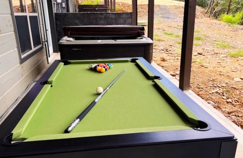 Relájate en la piscina climatizada de esta cabaña de 409 m², o tómate algo en la bañera de hidromasaje. Además, podrás disfrutar de un jardín y de un porche o patio. En cuanto al interior, puedes poner a prueba tus habilidades jugando al billar, o disfrutar del wifi gratis y de la televisión.