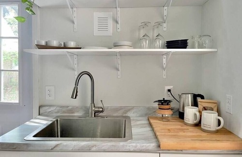 Los alojamientos con aire acondicionado de Mina House: Tiny Cottage Vibes in East Austin disponen de secador de pelo. La cocina está dotada de microondas y cafetera y tetera.