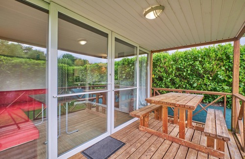 Los huéspedes de esta casa móvil tienen acceso a una terraza cubierta privada, así como a una serie de instalaciones al aire libre compartidas: una gran piscina compartida (supervisada y accesible de forma gratuita), canchas de voleibol y petanca, un parque infantil, barbacoas y un bar.