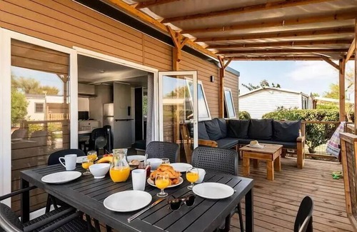 Las mejores tarifas para Mobil-home Terrasse Lounge comienzan desde $120 por noche con incluye Seguridad, Actividades deportivas, Niño amigable, Cocina, Aire acondicionado, Piscina, TV con todas las demás instalaciones. Alojamiento combina a cada viajero con su Alojamiento perfecto, ya sea que viaje con un grupo, amigos, familia o mascotas.