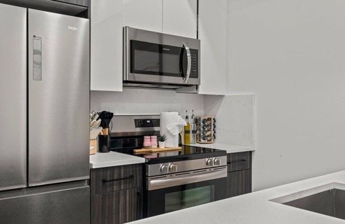 Al instalarte en este alojamiento de 1 dormitorio y 1.5 baños, encontrarás una sala de estar, aire acondicionado y escritorio. Disfruta del wifi gratis y de la televisión. El cuarto de baño incluye un secador de pelo y toallas. La cocina está equipada con horno, placa de cocina y frigorífico, además de cafetera y tetera, microondas y utensilios de cocina. Y como podrás aprovechar la lavadora y la secadora, no te hará falta llevar mucho equipaje. Otras comodidades incluyen ropa de cama, una tabla de planchar, calefacción y una silla de oficina.