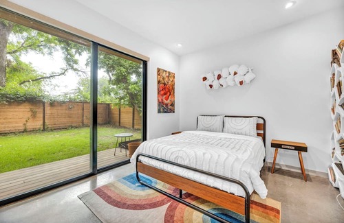 10 min from downtown, this home is situated next to a sculpture garden (visible from the balcony) and across the street from Austin Bouldering Project!