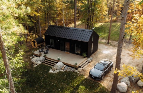 Modern Cabin in Forrest with Cedar Barrel Sauna | Cabina en Hackensack