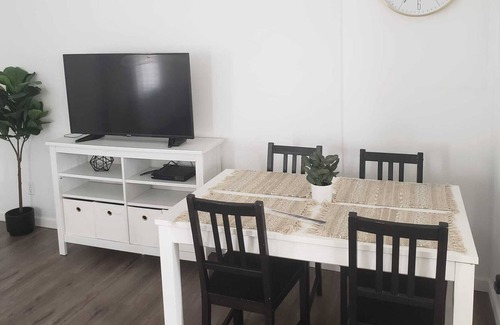 Este alojamiento de 2 dormitorios y 1 baño cuenta con un comedor y un sofá cama. El cuarto de baño incluye toallas, papel higiénico y jabón. La cocina está equipada con horno, placa de cocina y frigorífico, además de cafetera y tetera, microondas y utensilios de cocina. No necesitarás llevarte mucho equipaje, porque hay una lavadora.