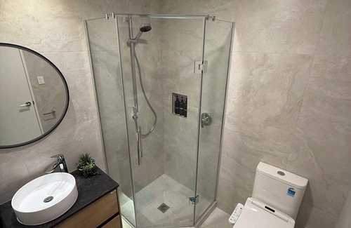 This modern, self-contained room offers a private entrance, walk-in closet, ensuite bathroom, and year-round comfort with climate control. Fresh linen and towels are provided for a hotel-like stay.