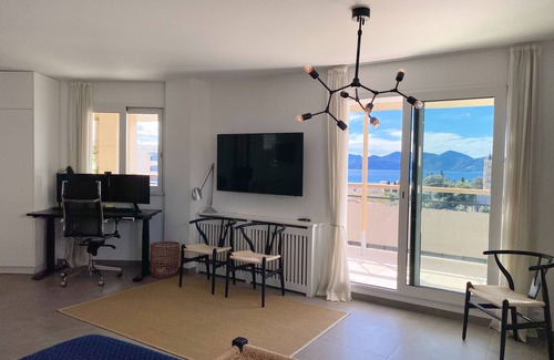 Modern penthouse with 360° sea view in Cannes Se encuentra en Riou - Petit Juas - Av de Grasse. Modern penthouse with 360° sea view in Cannes ofrece alojamiento, con Frente al mar, Instalaciones de bienestar, Internet, Entre otras comodidades. Estas características Apartamento Frente al mar, Instalaciones de bienestar, Internet, Para que su estadía sea cómoda.