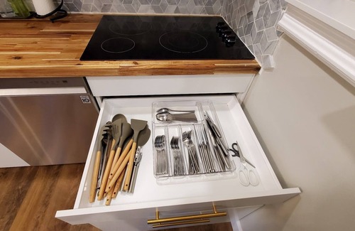 Al instalarte en este alojamiento de 2 dormitorios y 1 baño, encontrarás una sala de estar, chimenea, aire acondicionado y escritorio. El cuarto de baño incluye un secador de pelo, toallas y papel higiénico. La cocina está equipada con placa de cocina, frigorífico y lavavajillas, además de cafetera y tetera, hervidor eléctrico y microondas. Y no tendrás que llevarte ropa de más, porque podrás aprovechar la lavadora y la secadora.