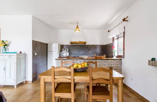 En El Palmar, famoso por sus kilómetros de playas de arena, la casa de vacaciones El Algarrobo está situada en un entorno tranquilo y tiene capacidad para 4 personas. La casa, moderna y adecuada para niños, dispone de un salón-comedor con cocina integrada muy bien equipada con barra de bar y chimenea, 2 dormitorios (uno con cama de matrimonio y otro con 2 camas individuales) y un cuarto de baño. Otras instalaciones incluyen Wi-Fi, televisión por satélite, ventiladores, una cuna, una trona y bicicletas. Lo más destacado es la amplia zona exterior con un jardín bien cuidado, una terraza cubierta amueblada y una barbacoa, el lugar perfecto para unas vacaciones relajantes. Además, todos los huéspedes tienen acceso a una piscina de agua salada y duchas exteriores compartidas con otras 3 casas de vacaciones. Las tiendas, restaurantes y bares están a menos de 10 minutos a pie. La playa está a 800 m.