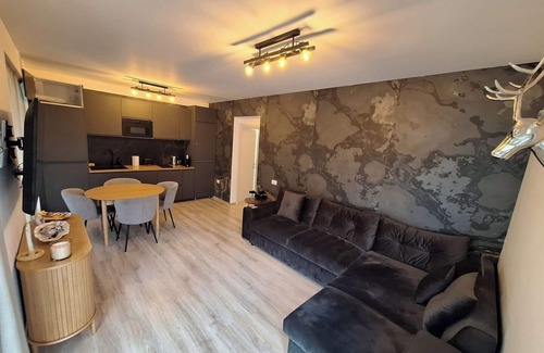 Welcome to Mountain Place to Remember, where the silence of the forest meets the majesty of the Bucegi peaks! Situated in the heart of Bușteni, this stylish 2-bedroom apartment invites you to sip Nespresso on the balcony, watch the mountains glow at sunset, and fall asleep to the sound of the nearby river.