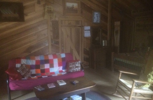 ¡Alojarse en la sala Pioneer te llevará de regreso a los días pasados! Es una unidad grande de una habitación y todos los paneles son de madera de álamo de tulipán, que cerramos sesión en nuestra propiedad y es el mismo tipo de árbol que los Pioneros usarían para su primer hogar de troncos. La cama de matrimonio está hecha de vías de tren recicladas y antiguas casas de labranza. Hay fotos de vagones cubiertos, nativos americanos, partes de herramientas y arneses viejos ... una excelente manera de probar su conocimiento de tiempos pasados. Hay un futón que hace una cama matrimonial, por lo que la habitación Pioneer fácilmente podrá dormir hasta 4 personas. La cocina está totalmente equipada (traiga su propia comida / toallas de papel), aire / calor o simplemente abra las ventanas, televisión con plato y películas, baño privado con bañera jacuzzi y ducha y entrada privada con mecedoras para relajarse. Se proporcionan ropa de cama, mantas, almohadas, pero traiga sus propias toallas de baño.