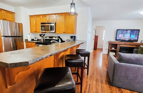 A este condominio junto a las pistas de esquí tan agradable no le faltan opciones para pasarlo en grande, como, por ejemplo, bicicletas y golf en las instalaciones. Estarás a 6min a pie de Kicking Horse Mountain Resort y a 12min de Telecabina Golden Eagle Express. El alojamiento dispone de garaje, así que olvídate de tu vehículo y sal a pasear.