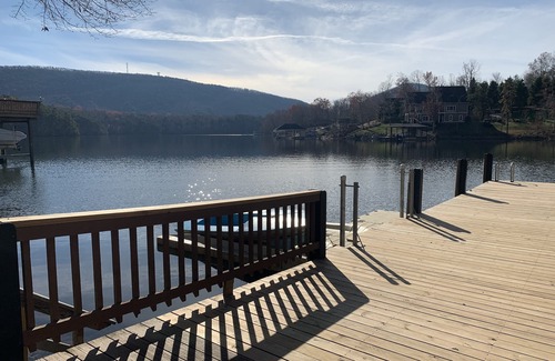 Mountain View Cove se encuentra en Mountain View Shores en el extremo inferior del lago cerca de la presa. Esta hermosa casa tiene excelentes vistas y se encuentra en una cala tranquila de aguas profundas. En el nivel principal hay una cómoda sala de estar en un plano de planta abierto conectado con la cocina y una gran terraza. El comedor tiene capacidad para ocho personas cómodamente con espectaculares vistas del lago y las montañas. ¡Una gran cocina espaciosa y bien surtida permite mucho espacio para que más de un chef prepare las comidas! Esta casa de cuatro dormitorios cuenta con una habitación familiar de nivel inferior con un televisor grande. Hay un amplio espacio de estacionamiento en la calle para vehículos y remolques de botes. La gran terraza con vista al lago está suficientemente amueblada para relajarse en esas tardes perezosas. El gran patio cubierto de hierba tiene una suave pendiente hacia el muelle y ofrece mucho espacio para que jueguen los niños. Esta zona tranquila del lago tiene aguas claras y profundas y es ideal para pescar o nadar.