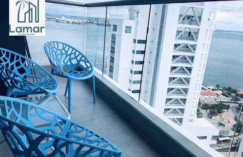 Frente a la playa en el mejor edificio de Cartagena, cerca a la ciudad amurallada, con todas las comodidades, edificio moderno, piscina piso 40, zonas húmedas, apartamento súper dotado con dos baños completos, balcón, sala comedor y vista al mar con un fantástico balcón