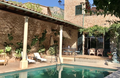 Esta casa cerrada está enclavada en el pueblo de Fornalutx del siglo XI, a pocos minutos de Sóller y el pueblo costero de Puerto de Sóller. La casa ha sido cuidadosamente convertida de un histórico molino de aceitunas. Los azulejos de cerámica antiguos acentúan las paredes del baño y la cocina, y todos los trabajos de metal, incluidos portones, accesorios de puertas, lámparas, etc han sido hechos a mano por el herrero de la ciudad, que una vez fue el alcalde de la ciudad y ahora nuestro cuidador. Una vez que ingresas a la puerta, te dan la bienvenida las buganvillas en cascada, las rosas trepadoras, la lavanda, los naranjos y el romero, y el flujo relajante del arroyo cercano. Hay 3 lugares de estacionamiento: 3 autos pueden caber dentro de las puertas y 1 a las afueras de la puerta.