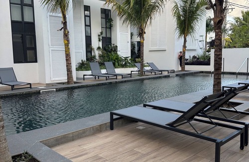 New 3-bedroom apartment with swimming pool, on the seafront. | Apartamento en Grand Baie
