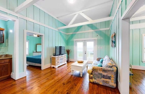 When you're not exploring the island, you'll love spending your leisure time at this unique, family-friendly retreat. Beautiful hardwood floors create a cool, comfortable place to relax while watching TV or surfing the free WiFi. Pick up some fresh fish from the market and fix yourself a delicious seafood dinner in the fully equipped kitchen, then head downstairs to the covered mezzanine to dine in the open air as the ocean sparkles in the distance. For a small fee, you can even bring your canine friends along to join in the fun too! (Two dogs max, please.)