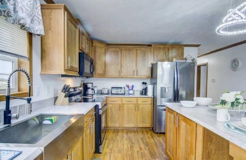 Este alojamiento de 5 dormitorios y 2.5 baños cuenta con una sala de estar, un comedor, un sofá cama y una zona para barbacoas. El cuarto de baño incluye un secador de pelo, toallas y papel higiénico. La cocina está equipada con horno, placa de cocina y frigorífico, además de cafetera y tetera, hervidor eléctrico y máquina de hielo. Podrás viajar con poco equipaje, porque tendrás una lavadora y una secadora a tu disposición.