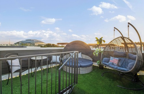 NEW Penthouse Rooftop Deck! Steps to Stadium. Lux Extras, private garage & gated Se encuentra en Arlington. NEW Penthouse Rooftop Deck! Steps to Stadium. Lux Extras, private garage & gated ofrece alojamiento, con Servicios de invitado, Entretenimiento, Internet, Entre otras comodidades. Estas características Casa Servicios de invitado, Entretenimiento, Internet, Para que su estadía sea cómoda.