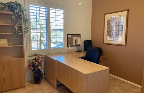 Esta casa cuenta con un cómodo plan de piso abierto con una gran sala, 2 dormitorios y 2 baños. También hay un estudio totalmente amueblado y funcional para gestionar esos detalles para trabajar o jugar. La gran sala está equipada con una sección de cuero contemporánea, sillas ocasionales y TV de pantalla plana grande. Las habitaciones están equipadas con una cama de matrimonio en el maestro y una cama de matrimonio en el segundo dormitorio. Esta casa puede alojar cómodamente a 4. La cocina está totalmente equipada y el cuarto de lavado y barbacoa son tan sólo unos pasos de distancia. El, patio privado vallado es perfecto para relajarse después de un día en los enlaces.